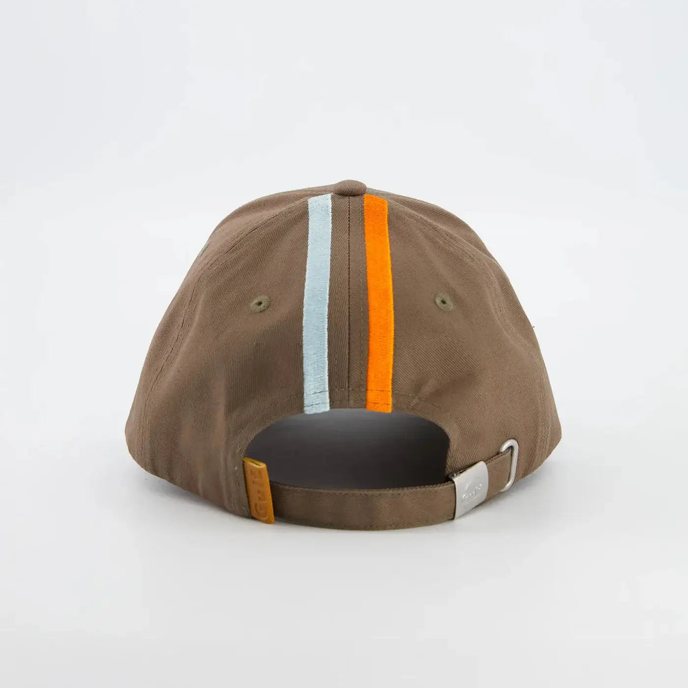Casquette Legacy Gulf qui refuse la médiocrité. Six panneaux en coton pur, broderies affirmées sur le devant et la visière, boucle métal embossée pour l'ajustement. Style motorsport brut, confort sans compromis.