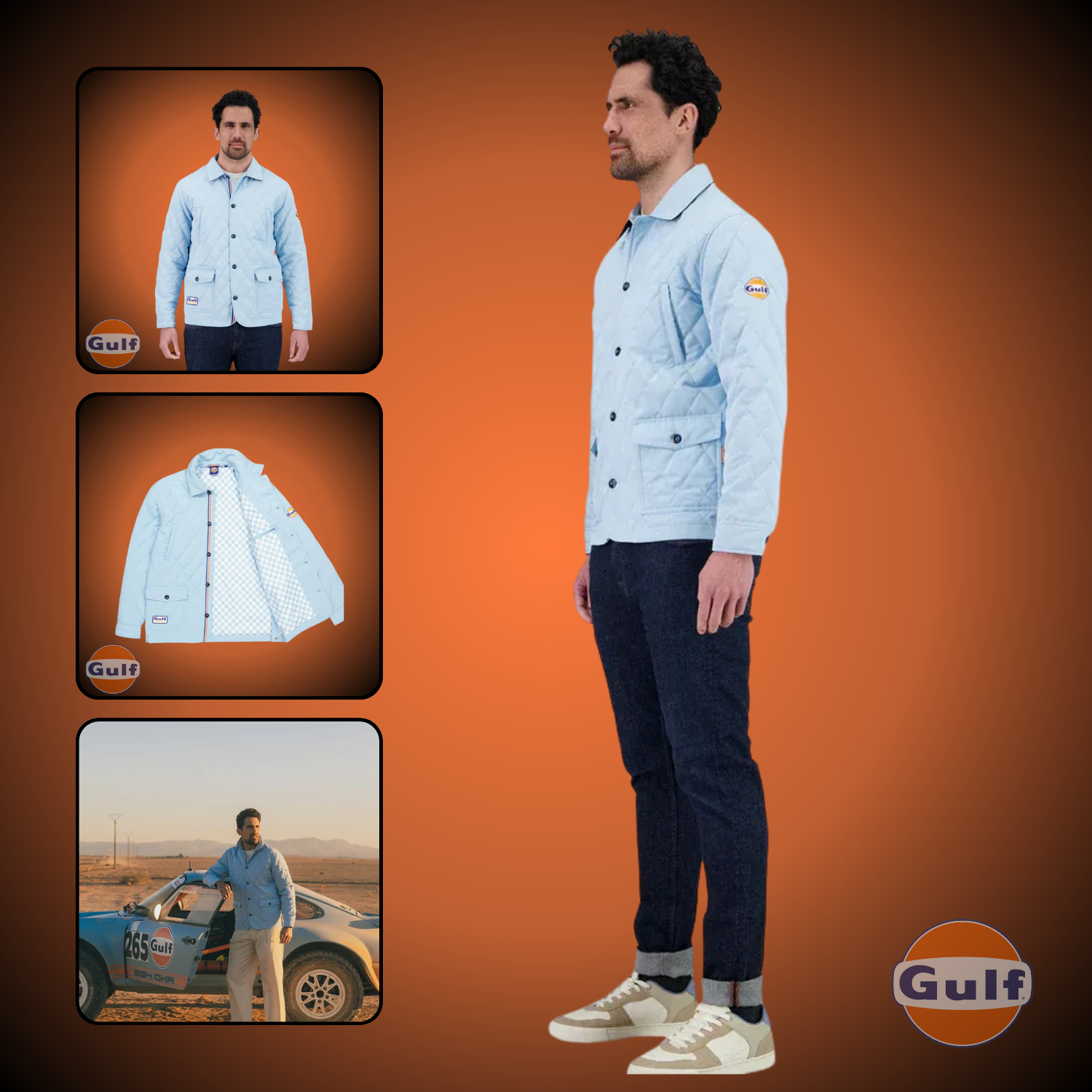 Adopte l’allure audacieuse et vintage de la veste Gulf "Gentleman" en bleu ciel, inspirée des légendaires tenues de pilotes. Son matelassage léger et son tissu déperlant offrent une protection efficace tout en affirmant un style unique. Détails emblématiques comme les boutons imitation corne, la doublure à carreaux et les broderies raffinées ajoutent du caractère, pour t’accompagner avec panache sur la route ou au bord de piste.